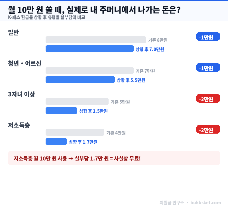 ▲ K-패스 환급률 상향 전후 비교 (2026 추경안 기준)